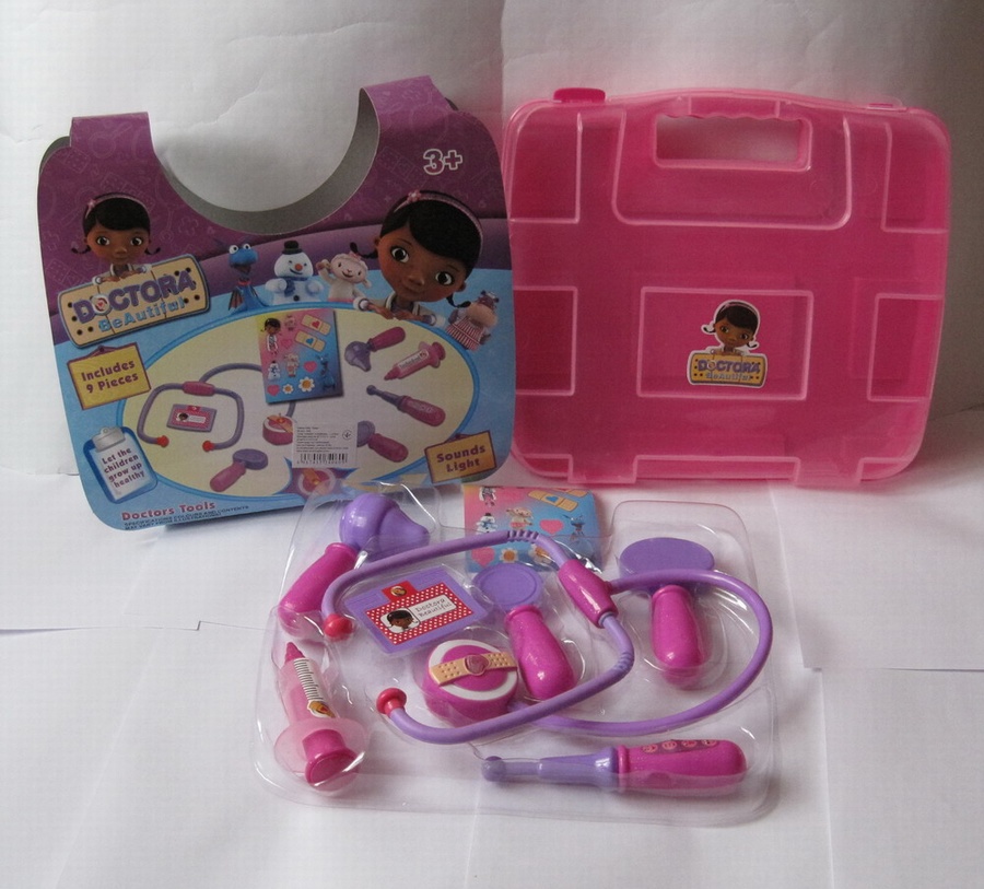 У набір входять входять 9 предметів - чемоданчик, стетоскоп (зі звуковими і світловими ефектами), молоточок, шприц, бейдж і багато іншого.