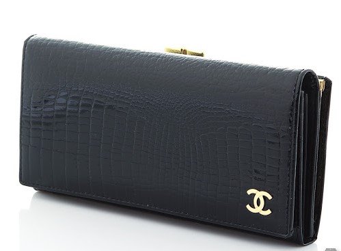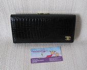 Гаманець жіночий Chanel 9045 Black - стильний лаковий гаманець з натуральної шкіри з монетницьою зовні.