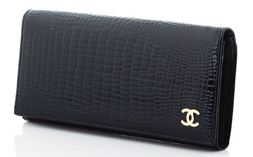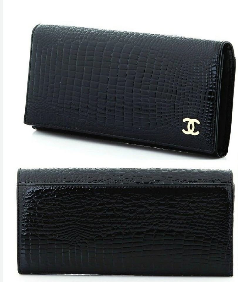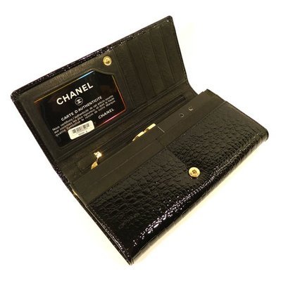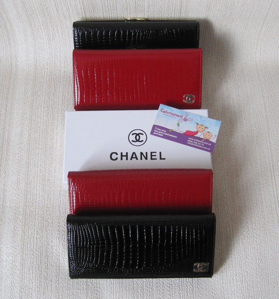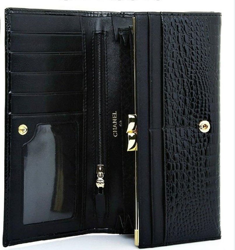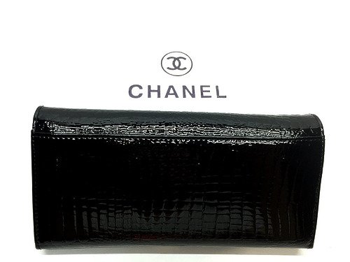 Гаманець жіночий Chanel 9010 Black - стильний лаковий гаманець з натуральної шкіри з монетницьою всередині.